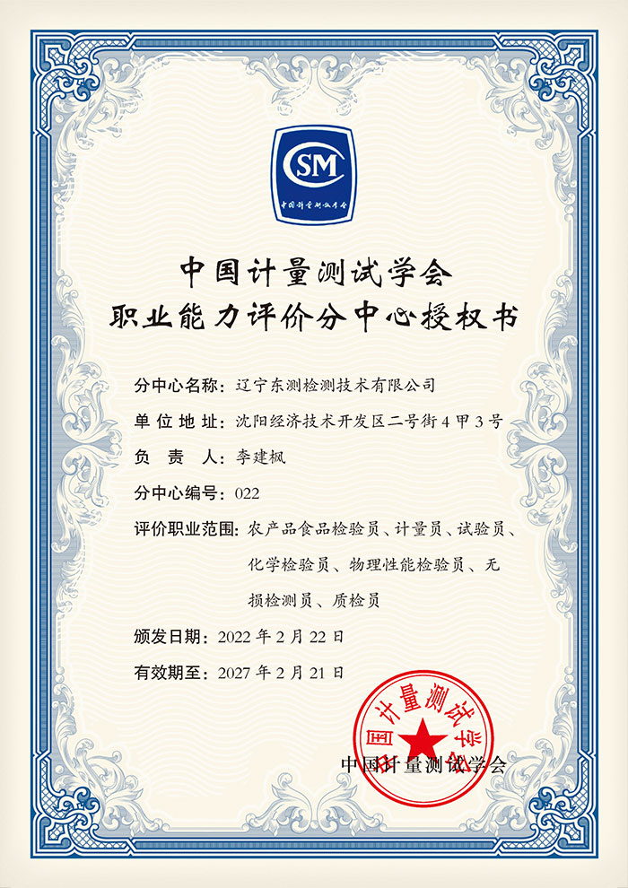 中國計量測試學(xué)會職業(yè)能力評價分中心授權(quán)書